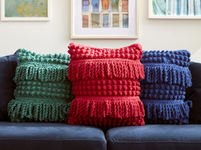 Bobble and Fringe Crochet Pillow in Bernat - Downloadable PDF