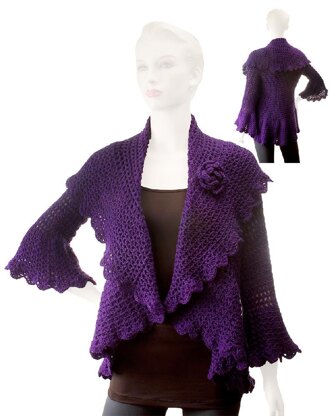 Fun to make and fun to wear, this wonderful cocoon sweater is figure-flattering and loaded with vintage style. Overlap the shawl collar and add a bow, brooch or crocheted rose (rose pattern included), or wear it open in front like a cardigan. Seamless styling means when you're finished crocheting, your sweater is ready to wear.