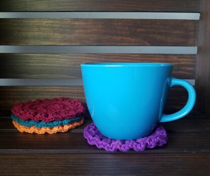 One 2.5 oz skein of the Lily's Sugar N' Cream can make 4 definitely, maybe 5 coasters.
