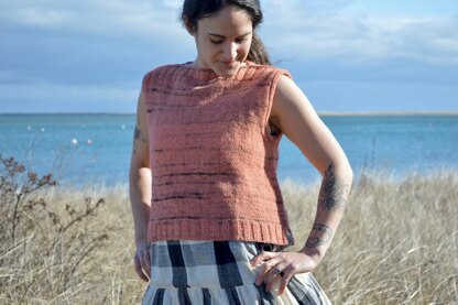 The Boho Shell is a simple and sweet little top that is perfect for layering year round. This slightly cropped sleeveless shell features a ribbed split hemline, A-line shaping and a ribbed boatneck neckline. This top is a great beginner garment and knits up quickly for instant gratification. Knit up in Retrosaria Beiroa yarn, a rustic, tonal wool yarn, this little shell is the perfect bohemian piece for layering over dresses and jumpsuits!