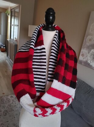 Make a statement & stay warm this Winter with this bold infinity scarf! Perfect to wear on those chilly Winter days! Super easy to make, its pizazz is in all of the sections of bold colour, stripe & check detailing!