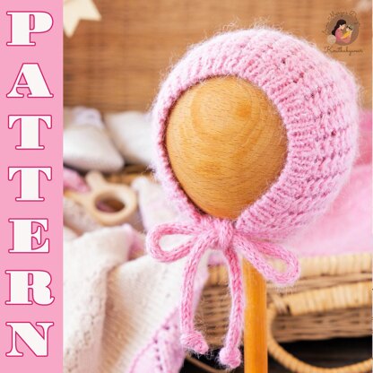 NOTES: Bonnet is worked flat in one piece. It’s made front to back and decorated with a fantasy pattern. It can be joined with knitted ties. To make this pattern easier to follow the sizing instructions are color-coded. The bonnet completes perfectly the wrap “Pink dreams”.