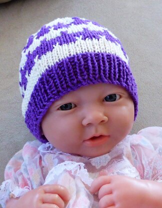 This gorgeous 4ply baby Beanie is worked in an easy slip stitch pattern and has a rib brim.