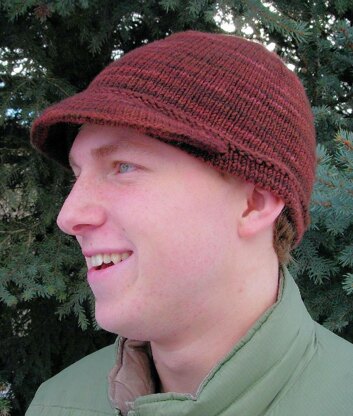 Beanie with a brim, rounded top, and hem. Brim shape is created through geometry, tight gauge and double layers - no cardboard or plastic! Fun to wear!