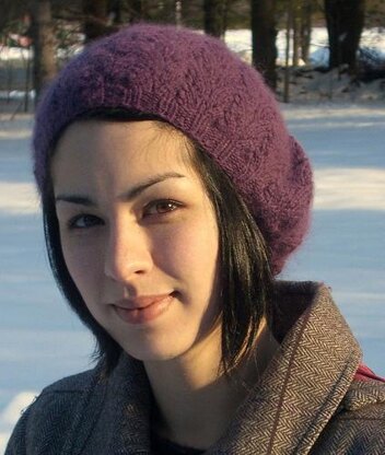 A beret pattern worked in a soft DK weight merino/angora blend using a traditional Shetland Lace pattern- Horseshoe lace.