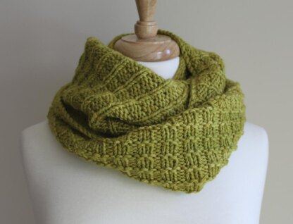 Every fall and winter wardrobe needs a big squishy knitted cowl. This one has texture, softness, and can be worn many ways. It is reversible, with a different pattern on each side. Show off one side or the other, or both at the same time. Wrap it once or twice. The top and bottom edges match perfectly and this is achieved by using a provisional cast on, although any cast on technique could be used. This easy pattern is worked in the round using only knit and purl stitches. Instructions are written and the pattern stitch is also charted. The pattern is written for 2 skeins of Malabrigo Twist (300 yd), shown here in Manzanilla Olive. However, any aran or even worsted weight yarn could be used. Finished measurements: Approximately 63.5 cm (25 inches) long and 23 cm (9 inches) wide laid flat, after blocking. Total circumference is approximately 127 cm (50 inches). Skills required: knitting in the round, provisional cast on, knit, purl.
