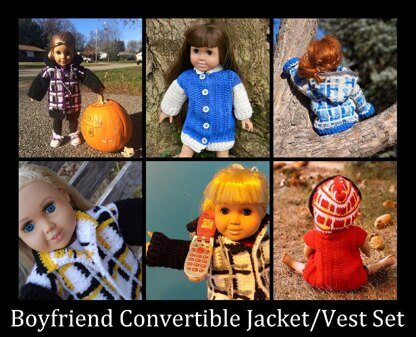 Looks like our favorite friend got chilly and borrowed her boyfriend's hoodie! Or maybe he left it over at her house the last time he visited! Oh look there is his letterman jacket too, AND his denim vest! The options with this pattern are truly endless. This is a unique idea for your little one's 8" doll.