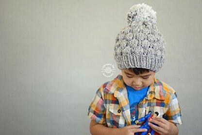 The Brady Bobble Slouch Beanie is a cozy knit for both boys and girls, including the whole family.