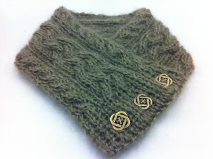 A lovely cosy neck warmer to keep you warm in the winter without being bulky under your jacket, a braided cable center design, with twisted cables at either side. This neck warmer can be adjusted in length to suit but doing a few more pattern repeats.