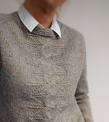The BraidZ sweater is worked seamlessly from the top down. After knitting a few rows back and forth to shape the neckline, the front is joined in the round and the raglan shaping is worked down to under arms. The pattern panel at the front is easy to memorize and easy to knit. You will not need a cable needle for the braidz, as they are worked in a special technique (explained with a foto tutorial). After separating the sleeves, the body is worked in desired shape (straight, with A-line or waist shaping) to desired length to knit the perfectly fitting sweater for you! .