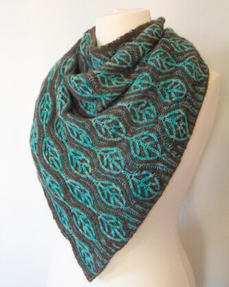 Starting from a few stitches, the shawl increases along one edge to form a triangle shape. The pattern is written using two full skeins of fingering weight yarn in contrasting colours (approximately 400m of each colour), however the size is easily adaptable to your gauge and weight and amount of yarn.