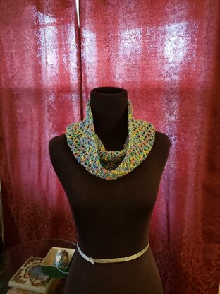 Simple Stitch patterns can be anything but boring. The Lacy effect with short color bursts found in Caron Simply Soft Paints blend perfectly in this casual dress cowl. I see this being worn through the last frost, and nearly to Mothers Day, incorporating a soft burst of Spring, while keeping the lingering cold of Winter at bay.