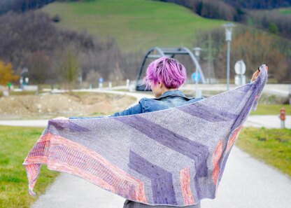 Combining awesome things makes them even better, just like in this shawl: brioche, mohair, garter stitch, marled colors, stripes, textures and i-cords. This asymmetric shawl has it all!