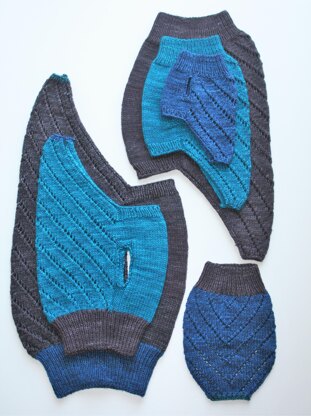 The pattern is worked in rounds from the top down. It is suitable for advanced (adventurous) beginners: knit, k2tog, purl, skp, sk2p, yo.
