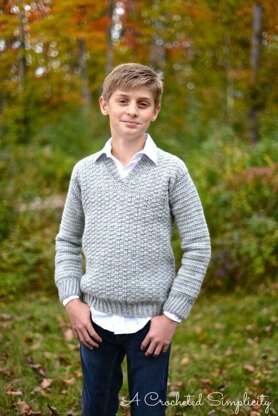 The sweater is worked from the bottom up with minimal seaming (shoulders only). Sleeves are then worked directly from the armhole openings and worked and shaped down to the cuff. The neck ribbing is then added.