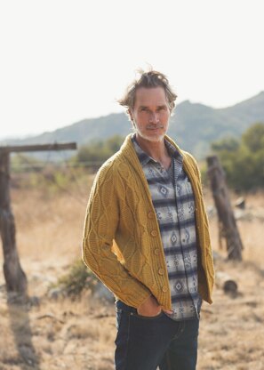 A snuggly, warm cabled cardigan just in time for the big cold! Brewster by Cheryl Toy is made for anyone who enjoys wrapping up in cables and shawl collars for the winter months ahead. This seamless cardigan is worked from the bottom up with clever button band and pocket construction. Brewster makes a statement in our new-for-fall 2020 mustard colorway, showing off the bands of vertical, textured cables.