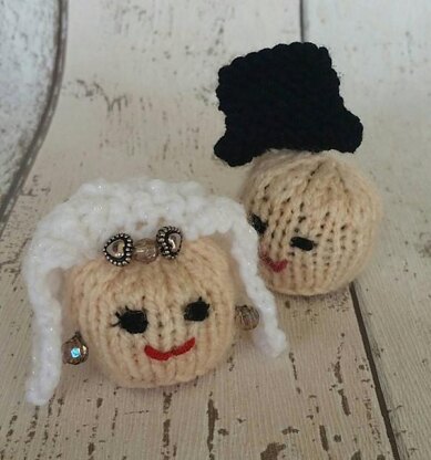 My pattern gives you easy to follow instructions to knit the Bride and Groom covers/cozies and top hats. When it comes to the veil, I have included patterns for 2 designs. One is a very easy crochet design and the other a knitted design . Also included is a colour chart to guide you with hand embroidering the face.