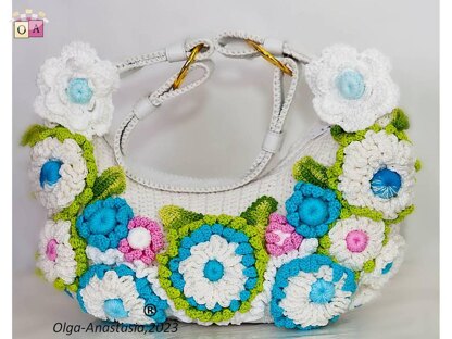Bright summer bag with crochet flowers