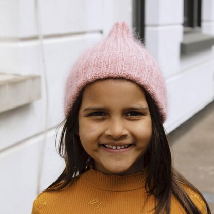 The use of a 4ply wool combined with a lace weight mohair makes this beanie warm yet light with just a touch of that much-loved, fluffy mohair halo.