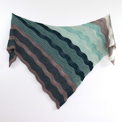 Brioche beach is a composition of squishy brioche stitch and a swell of classic old shale waves mimicking the ocean waves rolling onto the beach. The brioche sections are very basic and ideal for a beginner in brioche knitting while the waves give the shawl just the right amount of drama.