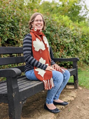 This cosy scarf pattern contains 4 British leaf motifs that you can incorporate in any order. For each motif there is both a grid and written instructions available to follow, depending on your preferences.