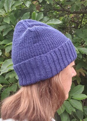 A cosy hat knitted in broken rib and a with a brim in double rib. The broken rib gives the hat an intersting texture and at the same time makes it elastic and tight. I have used a thin soft baby merino wool yarn that is both warm and soft.