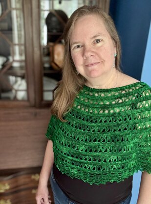 Come learn the joy of a very old stitch technique crocheted in a new way! This beautiful cape is made using an in the round style of the Broomstick Lace Stitch and single crochets. I dare say that it is an achievable stitch even for confident beginners willing to give it a try. The addition of bead will add a slight sparkle to help this design to really shine!