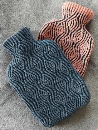 Brynne Hot Water Bottle Cover (Brioche knitting)