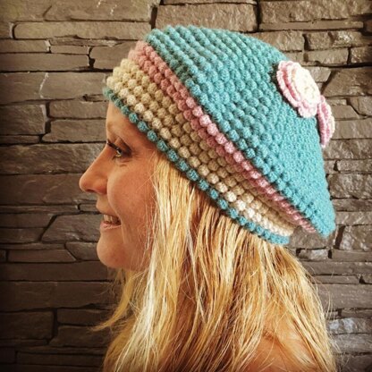 This hat is all about bubbles, which adds great texture and will keep you extra warm throughout the Winter. You can choose to crochet it in one colour and without the flowers - that way you only need 150g of yarn.