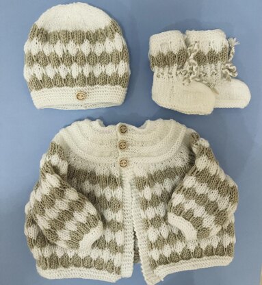 Bubble Pattern Matinee Jacket, Hat and Booties