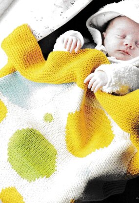 This is a pattern for a bubbles cot blanket, originally published in Knitting Magazine. The main part is knitted in intarsia, with garter stitch borders.