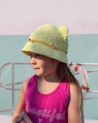 This crochet pattern contains instruction with step-by-step on how to make a crochet kids bucket hat with ears.