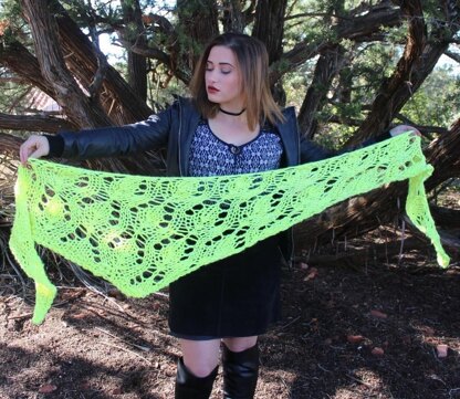Buckeye is a triangle shawl that is knit sideways. Fully written out and charted. This was designed for bulky, but can be easily adjusted to any weight of yarn or any size.