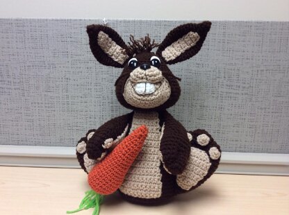This is BUCKleberry the Goofy Bunny :) he doesnt eat carrots , the carrot in his hand is his friend. He much prefers to eat candy :)