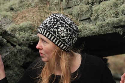 The Buggiflooer Beanie pattern uses either six or three colours, the latter of which I hope will encourage knitters new to Fair Isle colourwork. I originally designed the Buggiflooer Beanie to be the Shetland Wool Week hat for 2023, the year I was the Patron.