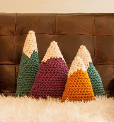 The pattern includes detailed instructions for three sizes: Mount Shasta - 14 inches tall Mount Diablo - 11 inches tall Nob Hill - 8 inches tall including colorwork. Plus instructions for combining the three to make a Mountain Range of Mega-Awesomeness.