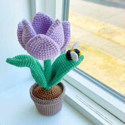 Learn how to crochet your own Bumble Blossom Purple Tulip with this detailed PDF pattern. Pattern includes step-by-step instructions with photos to crochet the flower, flower pot and one friendly bumblebee.