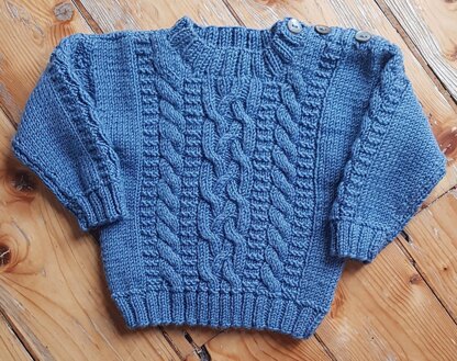 This is a beautiful, gender neutral, cable panel sweater, with cable stitch detail on front, back and sleeves of the garment. Suitable for babies from 0 to 2 years, with instructions for 6 sizes.