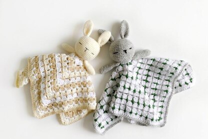 A bunny lovey / comforter for a cute snuggly baby gift, using the block stitch for endless colour combinations.