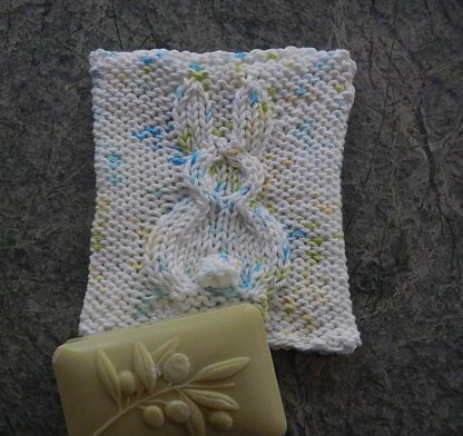 The Bunny spa cloth is not your ordinary bathing cloth. It is the perfect size for babies, kids and adults. The measurements are 6 inches x 6-1/2 inches making it especially easy to use. Knitted in the round, this spa cloth has a double thickness which is very luxurious. There is an adorable bunny silhouette on one side and the reverse has framed stockinette stitches.