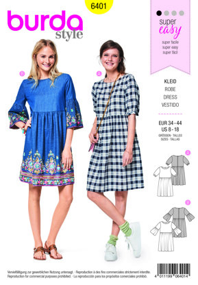 Burda Style Women's Swing Dress with Sleeve Variations B6401 - Paper Pattern, Size 8-18 ist eine Anleitung zum Sewing von Burda Style, die als Paper Pattern in den folgenden Sprachen verfügbar ist: Englisch, Französisch, Spanisch. Besonders geeignet ist sie für alle, deren Können bei Anfänger einzustufen ist. Probiere sie noch heute aus und kreiere dein nächstes Meisterwerk!