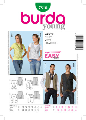 Burda Vest Sewing Pattern B7810 - Paper Pattern, Size 6-18 ist eine Anleitung zum Sewing von Burda Style, die als Paper Pattern in den folgenden Sprachen verfügbar ist: Englisch, Französisch, Spanisch. Besonders geeignet ist sie für alle, deren Können bei Anfänger einzustufen ist. Probiere sie noch heute aus und kreiere dein nächstes Meisterwerk!