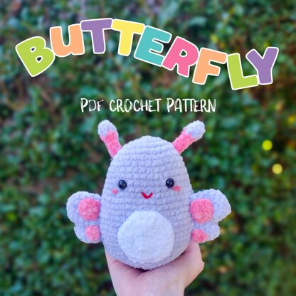 Create your own cute butterfly plushie! This pattern includes detailed instructions and pictures on how to crochet and assemble all the parts to make this butterfly.