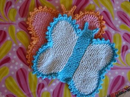 This is an easy knit with just a few techniques! The butterfly is so springy and fun and colorful. This is the perfect spring baby gift or child gift or even adult gift for that matter. Be sure to have fun with your color choices. The samples are shown in colourways #406 Caribbean Blue and #5638 Powder Blue, and #1109 Bubblegum and #2230 Mango. Suggested substitute shades are shown below.