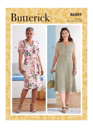 Butterick Kleid, Schärpe und Gürtel für Damen mit Körbchengrößen A/B, C, D, DD B6809 - Schnittmuster