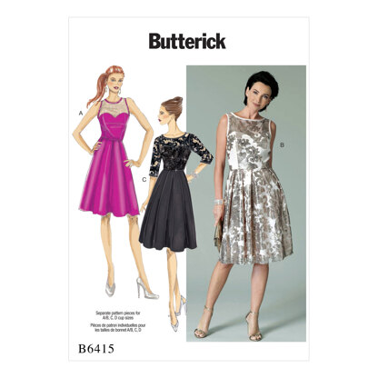 Butterick Kleider mit Herzausschnitt und Faltenrock für Damen B6415 - Schnittmuster