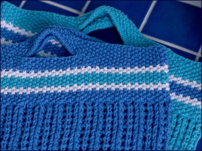 Yarn:Lily Sugar ’n Cream, 100% cotton, 110m/120 yds:70gm ball, gauge: 20 sts:10cm/4 ins using 4.5mm/US #7 needles, Colours: 18725 Blueberry with 18001 White & 18111 Mod Blue/Turquoise.