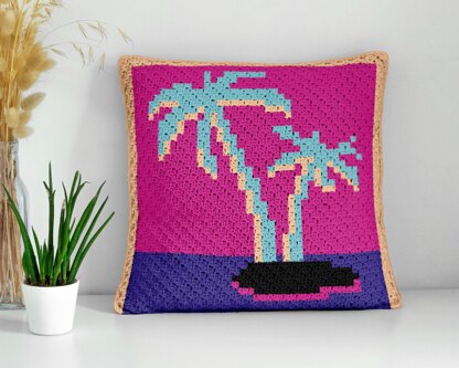 💜 Miami Vice 2 Palms TV Nostalgy Pillow Mini Corner-to-Corner (Mini C2C) Crochet Pattern