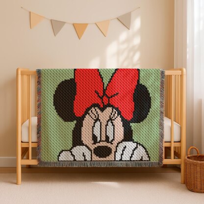 Disney Cartoon Minnie Mouse Throw! Crafted using the Corner-to-Corner (C2C) crochet technique, a charming pixel design - perfect for nursery receiving, kids' bed afghans, or cozy kids’ room decor.
