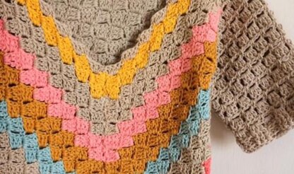 An aran weight easy C2C top - V neck shape and either a full diagonal or learn to do join as you go C2C to make the V shape diagonal.